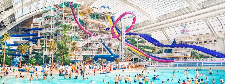 WORLD WATERPARK houses the world’s largest indoor wave pool. The five-acre wet and wild playground has slides of all speeds and sizes and is even home to the world’s tallest indoor permanent bungee tower.